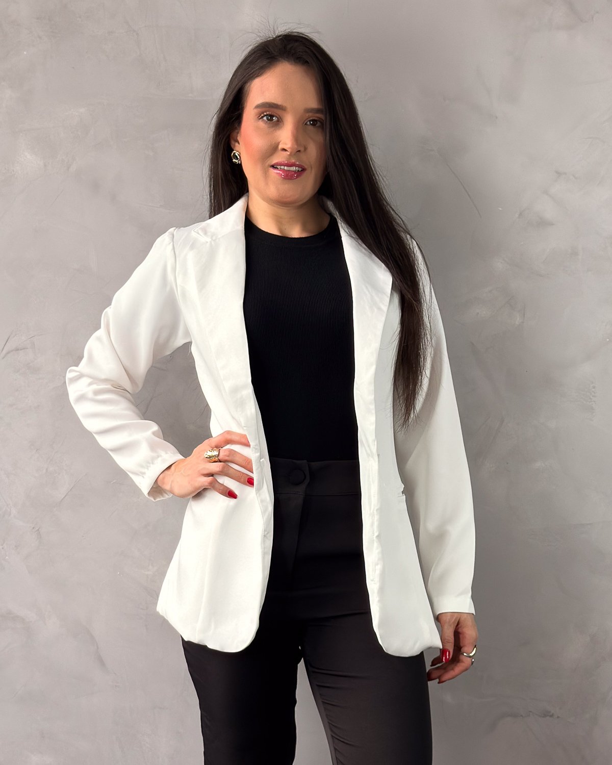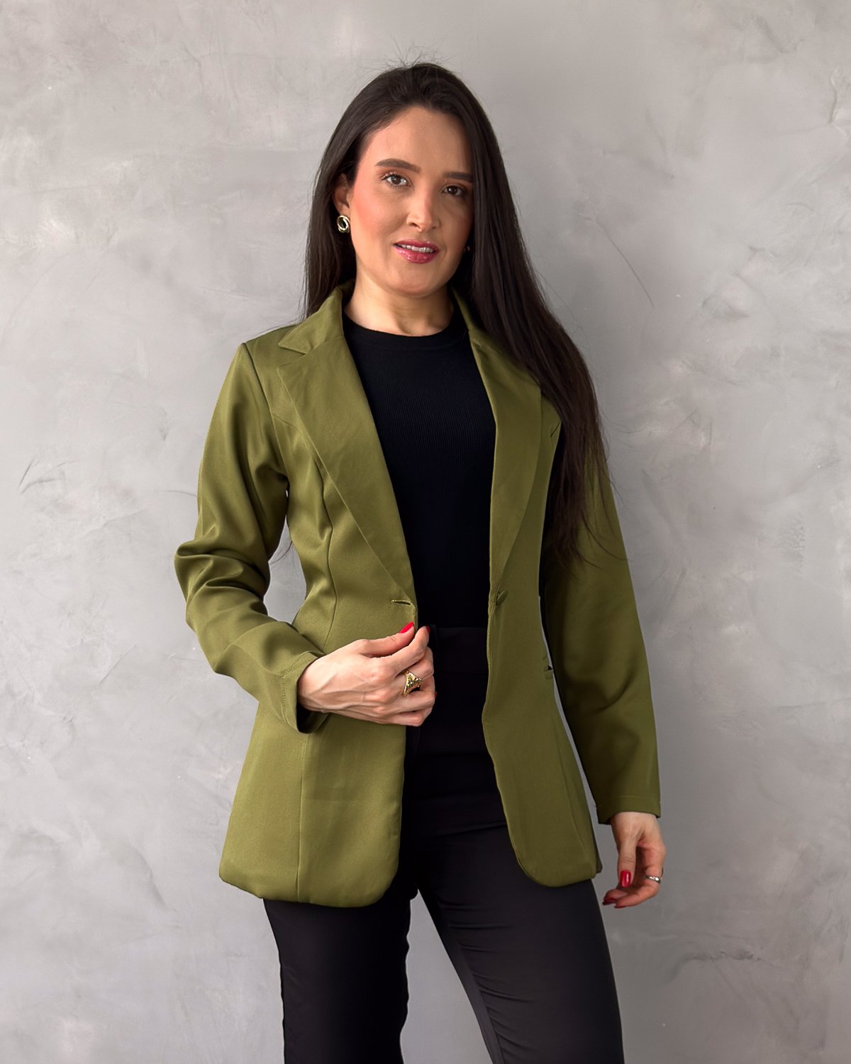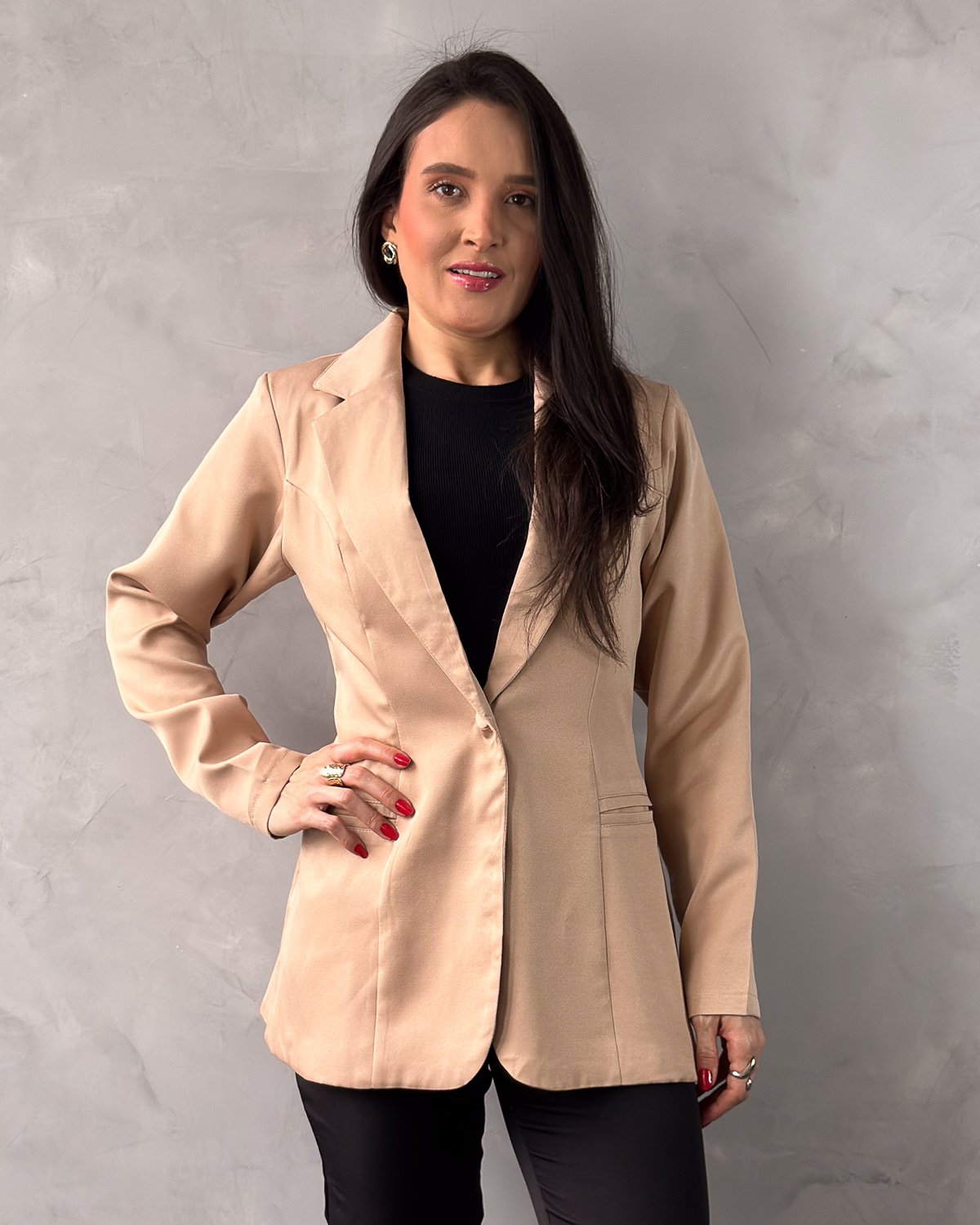 O Blazer Alfaiataria Forrado é uma peça essencial no closet feminino moderno. Com caimento estruturado, forro interno e acabamento de alfaiataria, ele eleva instantaneamente qualquer produção. Ideal para ambientes formais ou para composições estilosas com jeans e salto, ele traz elegância na medida certa. O modelo possui lapela clássica, botão frontal único e bolsos embutidos, entregando uma silhueta alongada e sofisticada.
