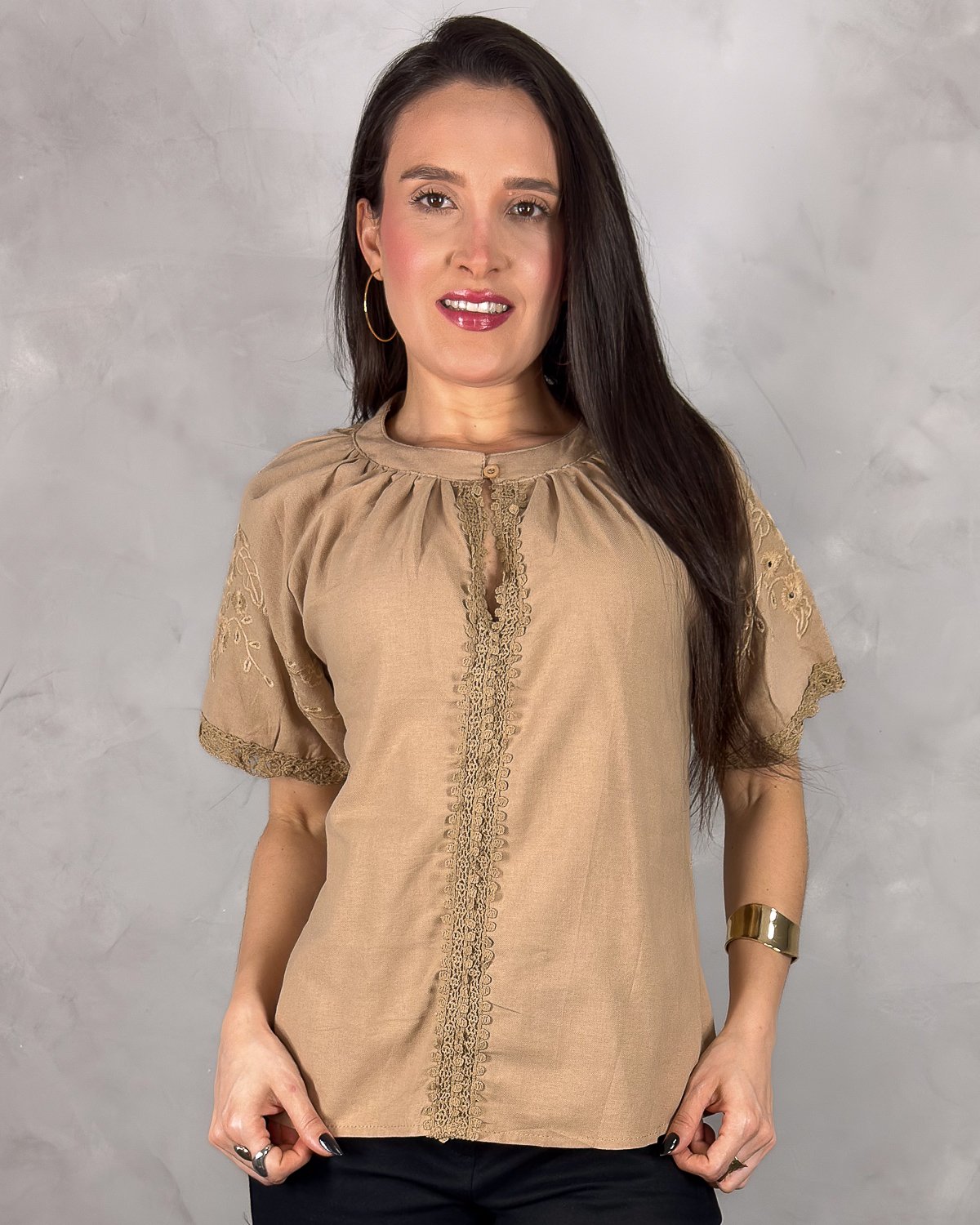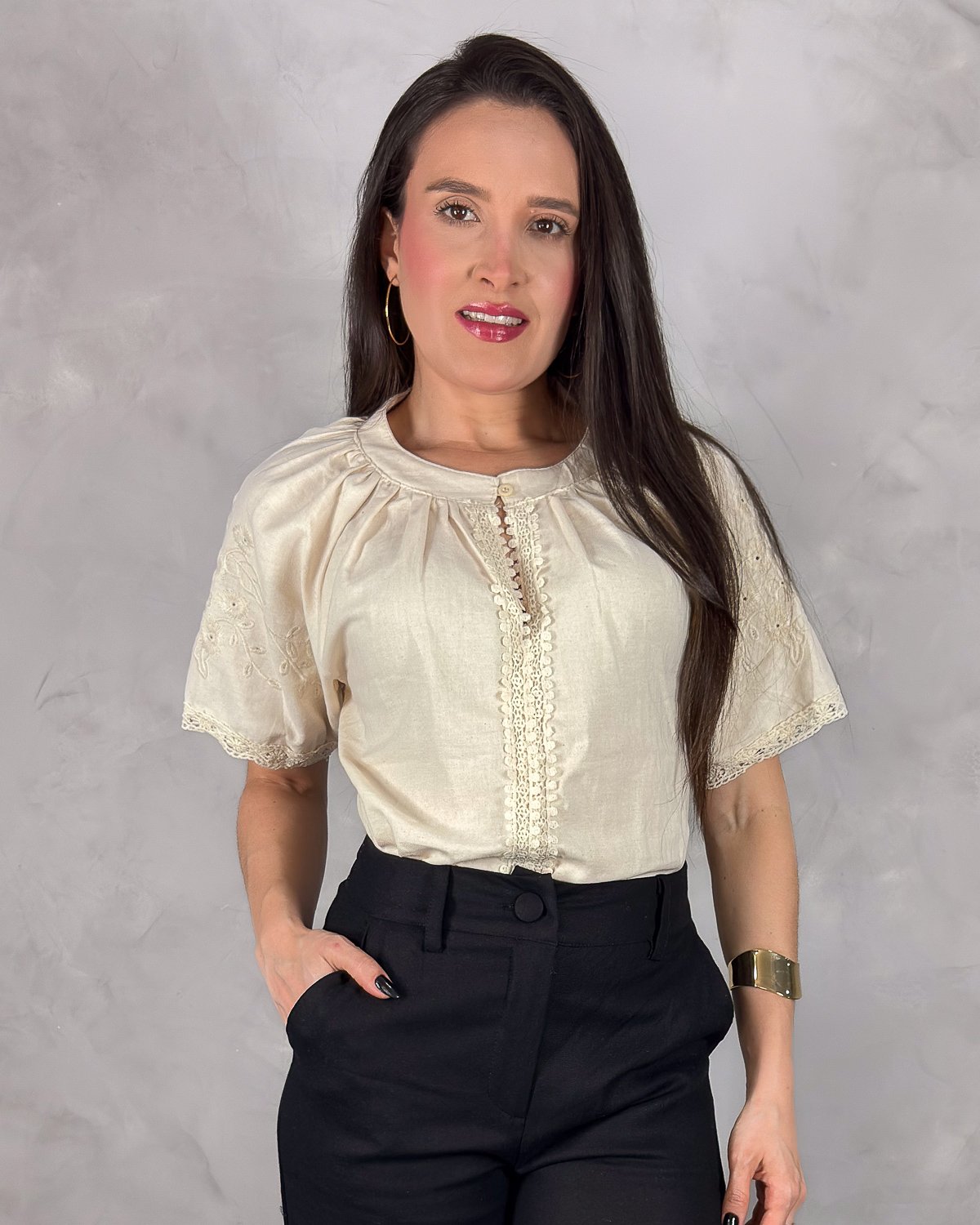 Perfeita para combinar com saias, calças de alfaiataria ou jeans, essa blusa transita facilmente do casual ao elegante, sempre com um toque feminino inconfundível.