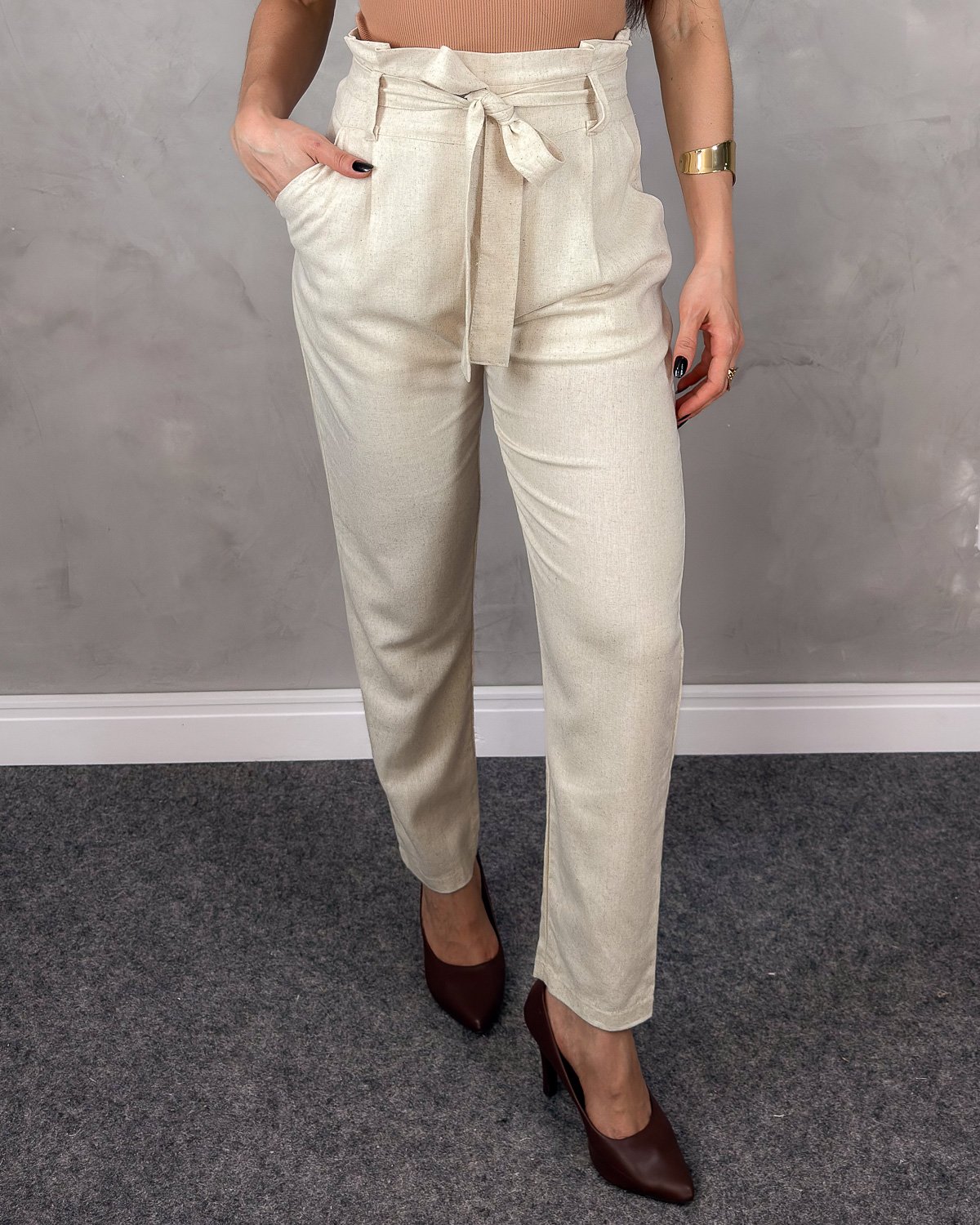 A calça ideal para unir frescor, elegância e estilo no dia a dia! Feita em tecido de linho leve e confortável, a modelagem clochard valoriza a cintura e proporciona um caimento fluido que alonga a silhueta. O detalhe de amarração frontal garante charme extra à peça, além de permitir ajuste personalizado na cintura.
