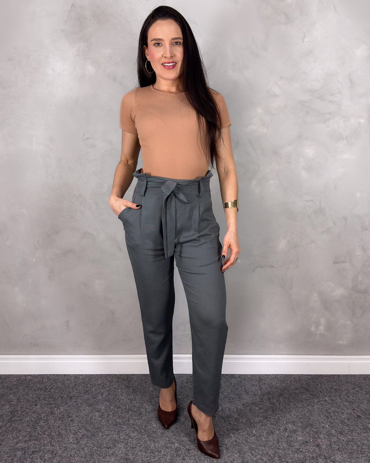Perfeita para compor looks sofisticados e descomplicados, essa calça transita com facilidade entre ambientes formais e produções casuais elegantes. Uma peça essencial para quem ama se vestir com autenticidade e conforto.