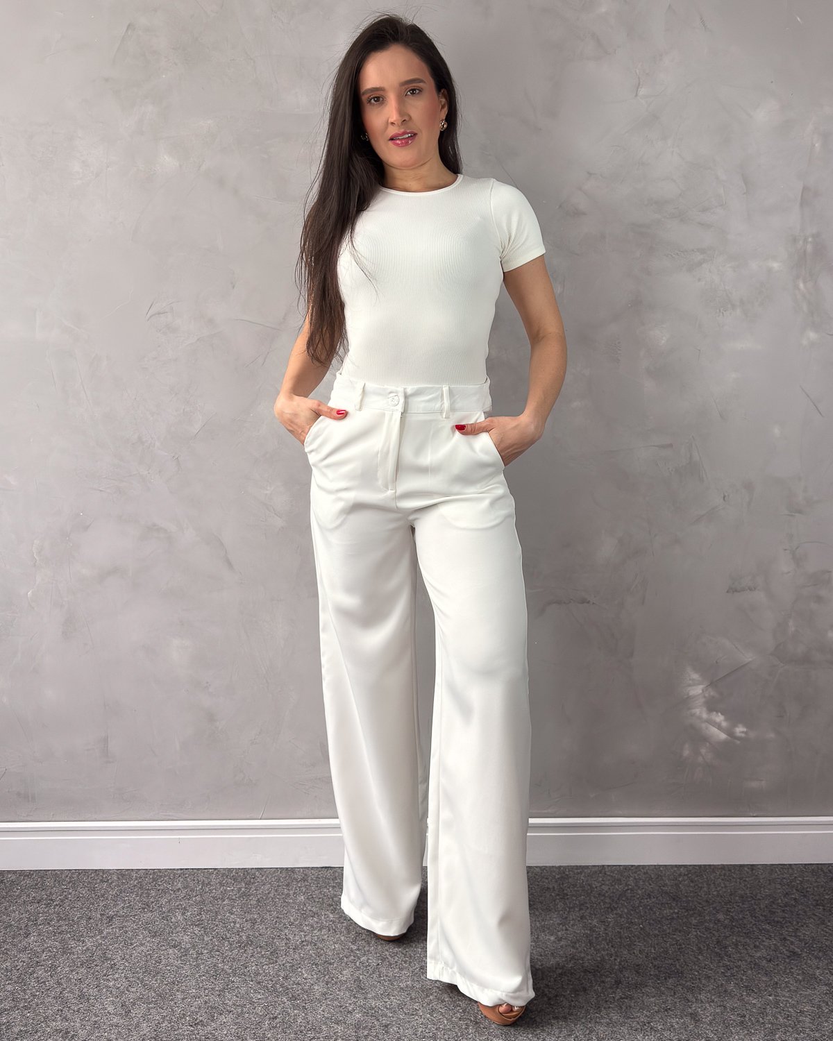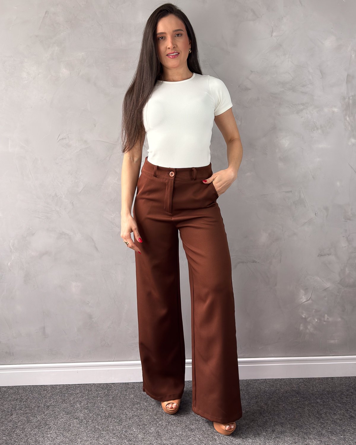 A Calça Alfaiataria Pantalona é sinônimo de elegância e sofisticação. Com cintura alta e modelagem reta e ampla, ela alonga a silhueta e proporciona caimento impecável. Os passantes na cintura permitem usar com cintos, e os bolsos laterais agregam funcionalidade. Feita em tecido encorpado e confortável, é ideal para compor looks de trabalho, eventos ou ocasiões mais refinadas. Combine com camisas, blusas ajustadas ou tops cropped para um visual elegante e moderno.
