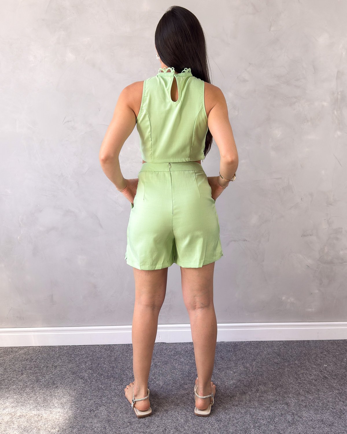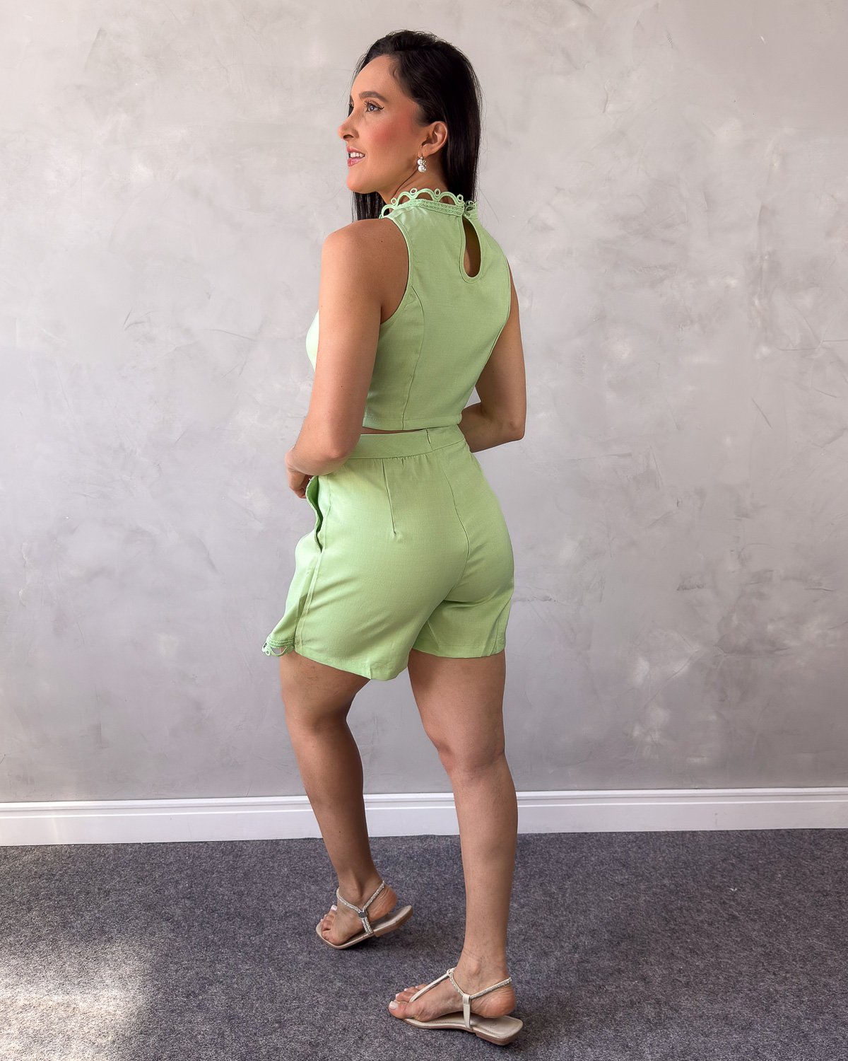 Ideal para dias ensolarados, eventos casuais ou até ocasiões mais arrumadas, esse conjunto é versátil e combina feminilidade com muito conforto, criando uma produção charmosa e única.