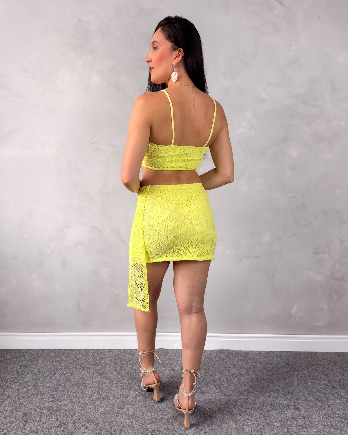 Este conjunto é a escolha perfeita para quem busca um visual moderno, feminino e cheio de atitude. O top com alças finas valoriza o colo com delicadeza, enquanto a saia curta com modelagem ajustada realça a silhueta de forma elegante e sensual. O conjunto cria uma composição harmoniosa, prática e cheia de estilo.