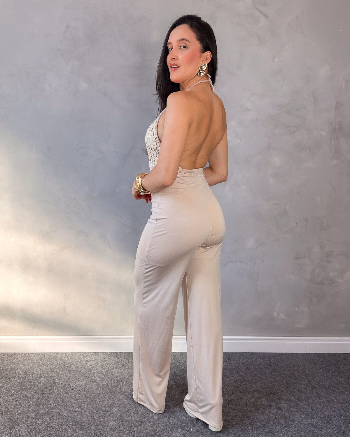 Este macacão frente única é a união perfeita entre sofisticação e sensualidade. A parte superior em renda traz um toque delicado e elegante, enquanto o recorte frontal valoriza o colo de forma marcante e feminina. A modelagem alongada cria uma silhueta elegante, com caimento fluido que garante conforto e presença.