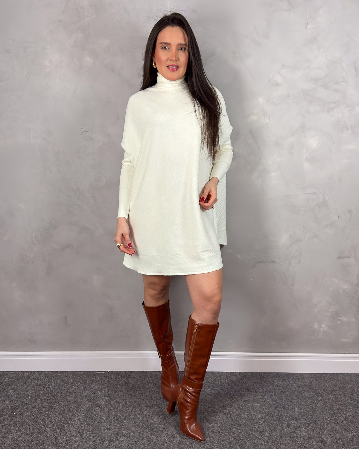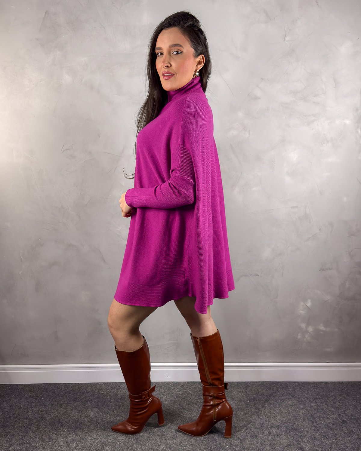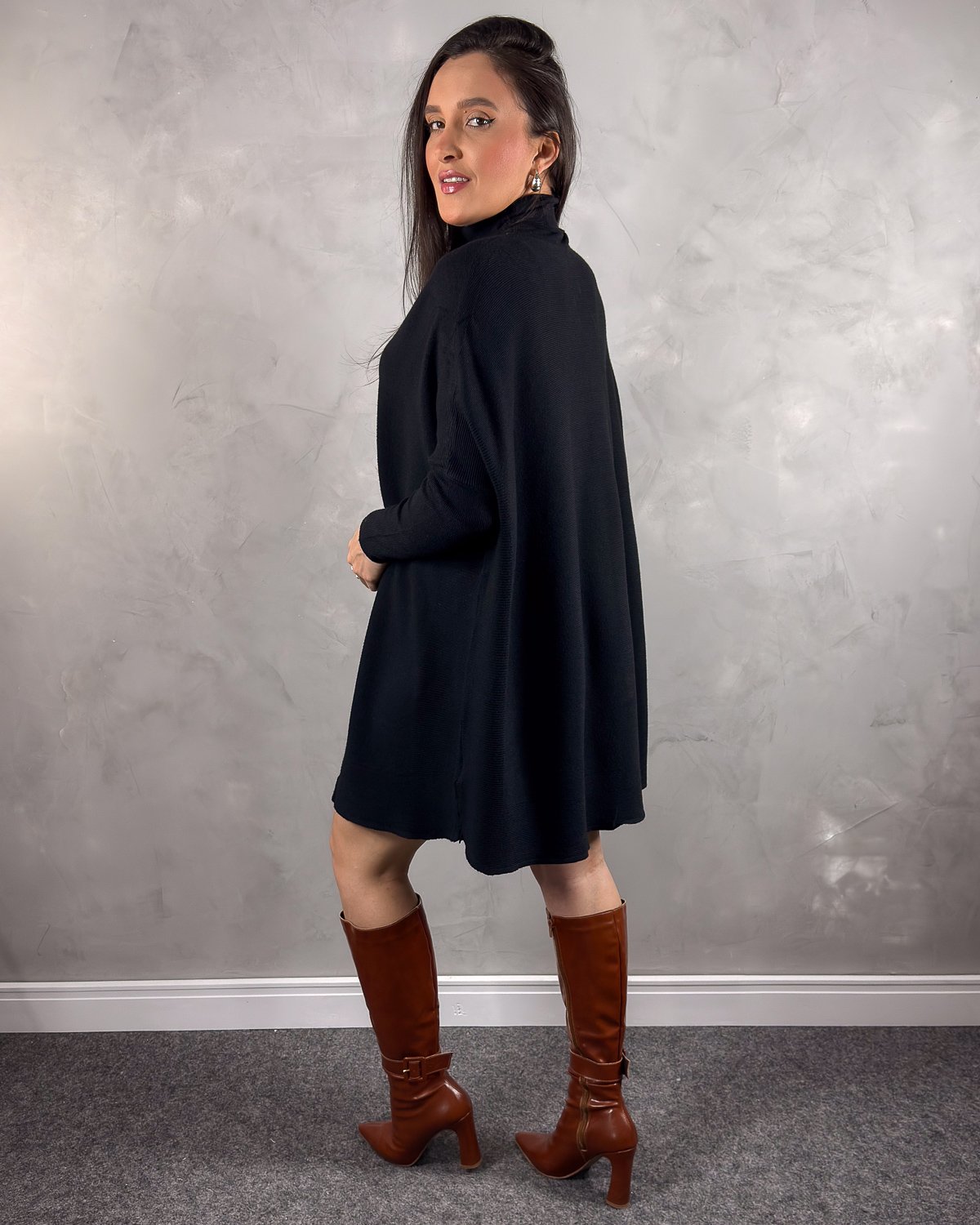 A Mini Vest Max é a peça versátil que toda mulher moderna precisa! Confeccionada em tricot mousse encorpado, possui modelagem ampla e comprimento alongado que permite ser usada tanto como blusa maxi quanto como vestido. A gola alta garante estilo e conforto térmico, enquanto o caimento leve dá movimento e elegância ao look. Ideal para dias frios, pode ser usado com botas, leggings ou sozinho para um visual ousado e fashionista.