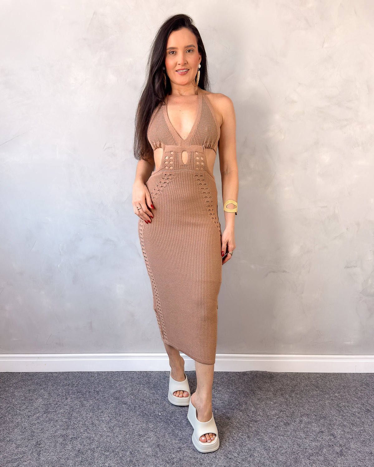 Com textura em tricot e caimento que acompanha as curvas, é ideal para ocasiões especiais, jantares, eventos ou produções sofisticadas do dia à noite. Um vestido marcante, pensado para mulheres que gostam de unir estilo, feminilidade e personalidade em uma única peça.