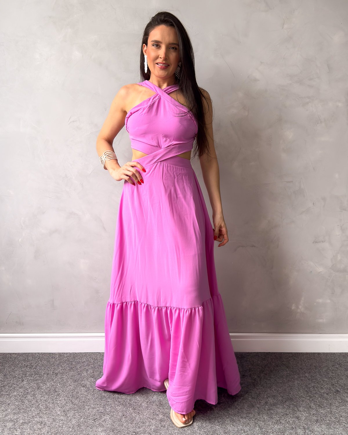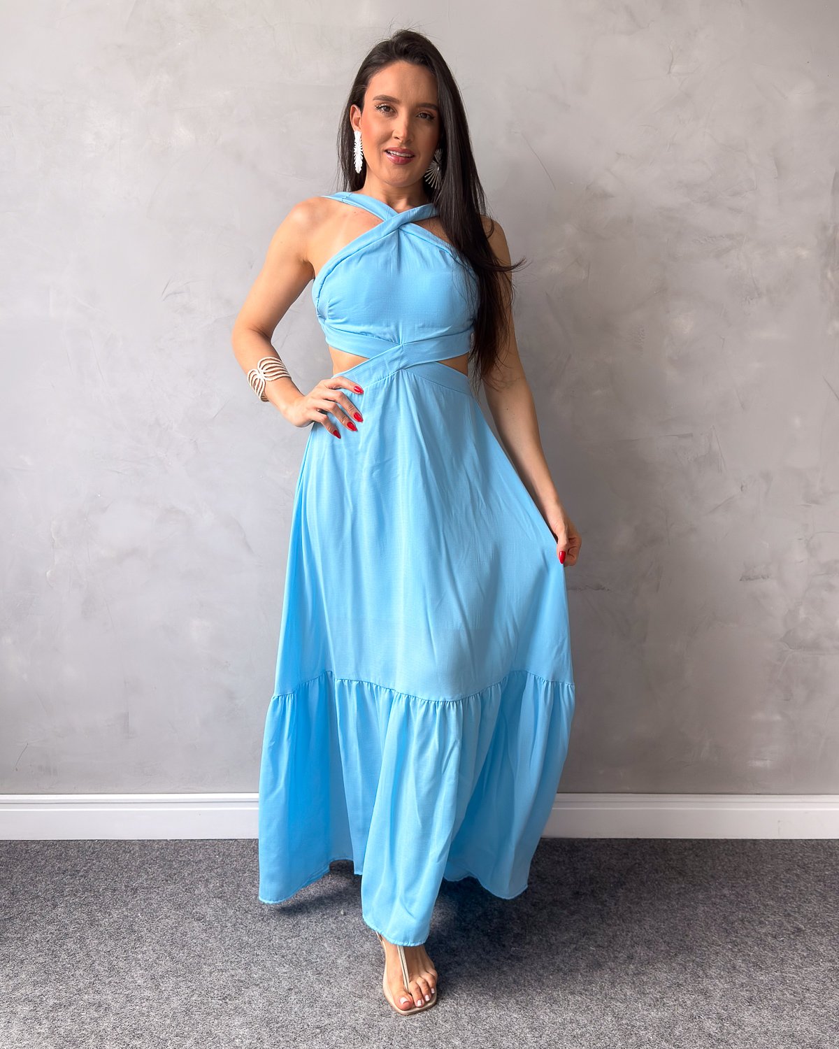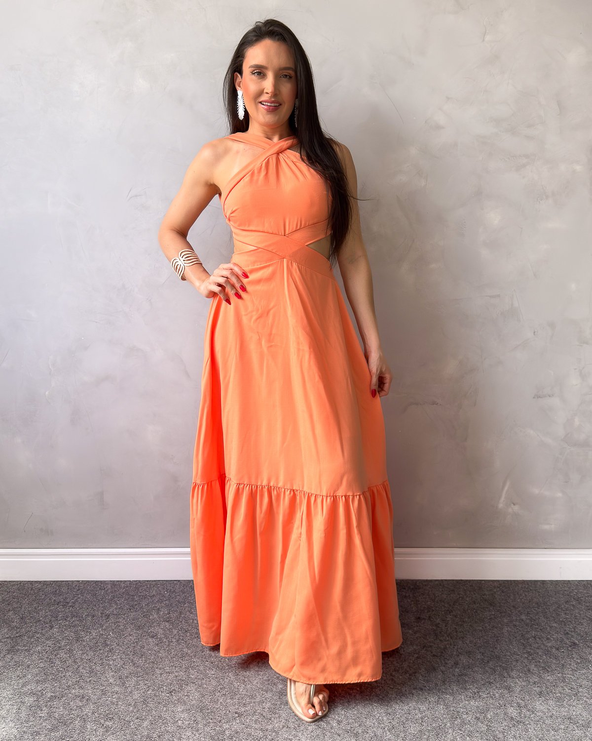 Este vestido longo é a escolha perfeita para quem busca um visual leve, elegante e moderno. Com recortes estratégicos e amarração nas costas, valoriza a silhueta e traz um toque de sensualidade na medida certa. O tecido fluido garante movimento e conforto, ideal para dias ensolarados, festas ao ar livre ou ocasiões especiais.