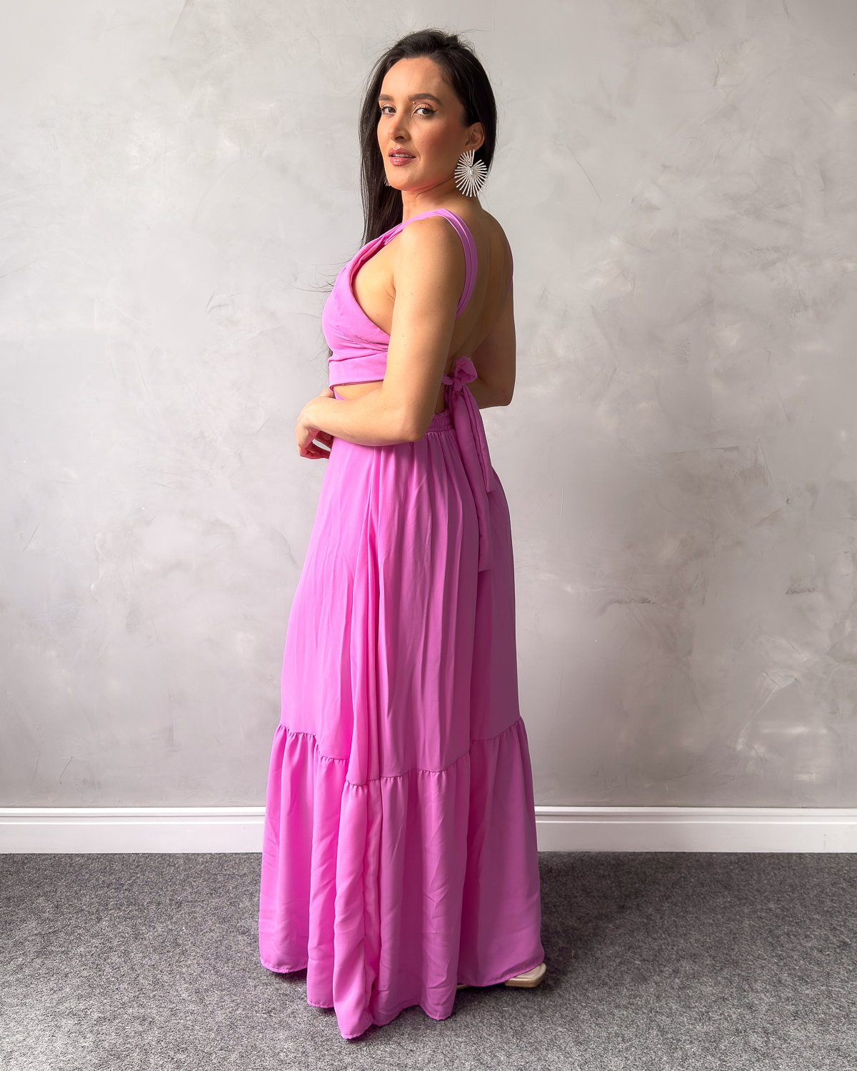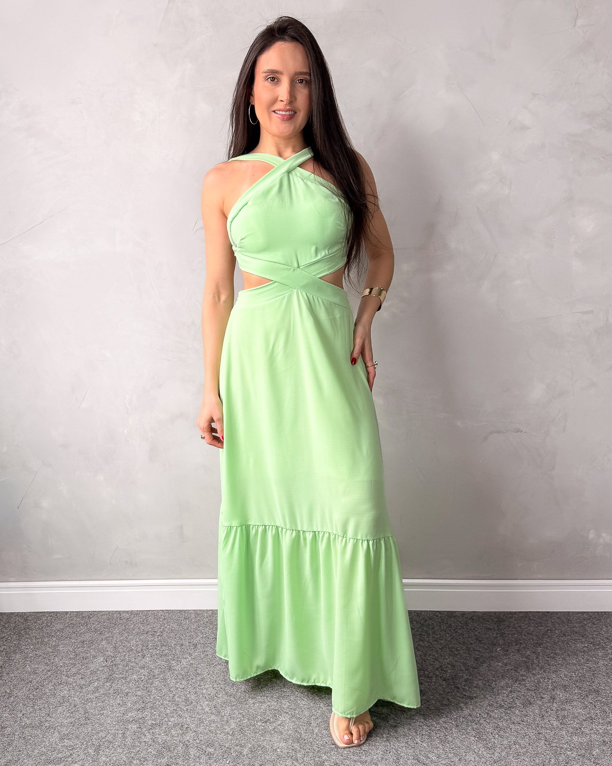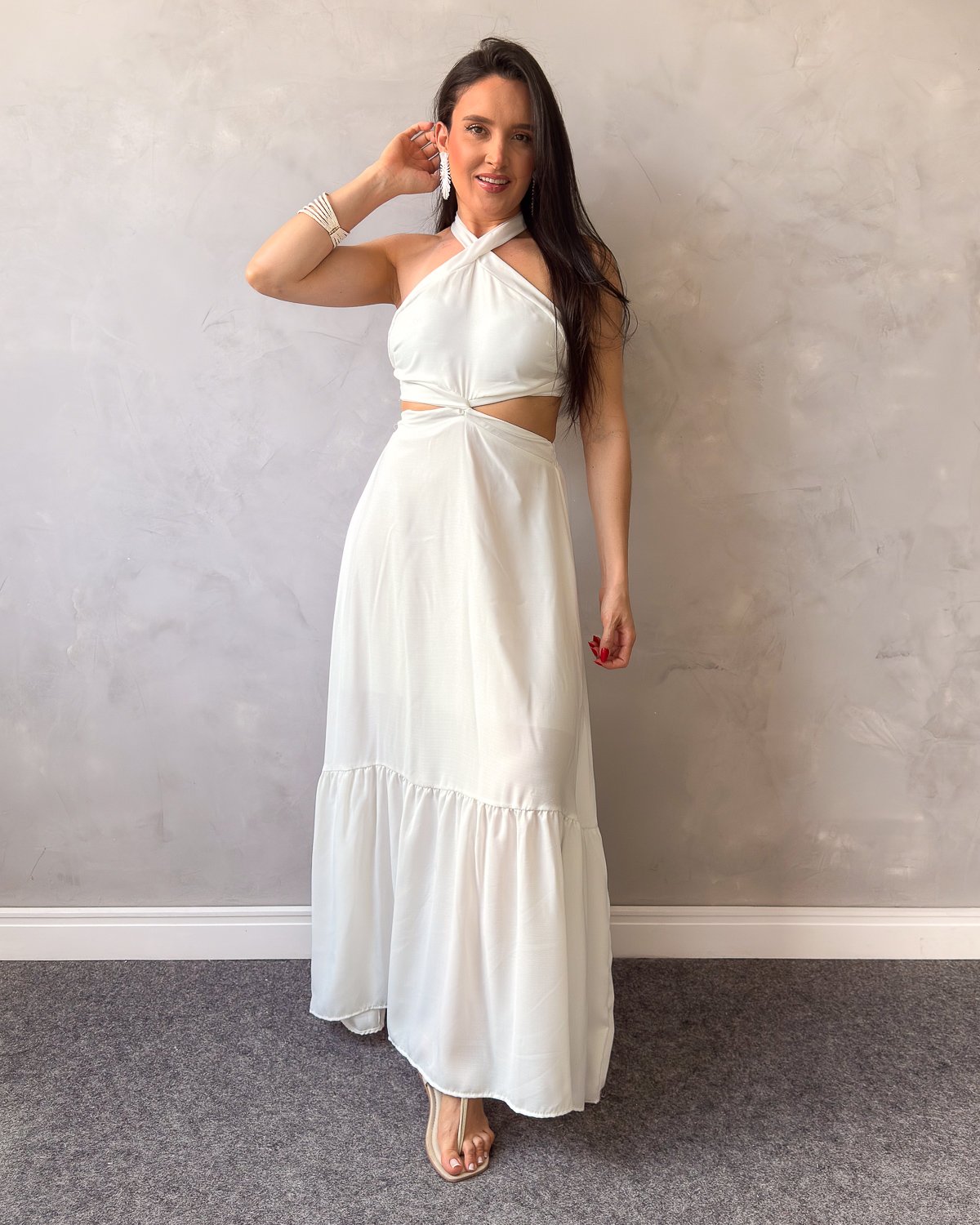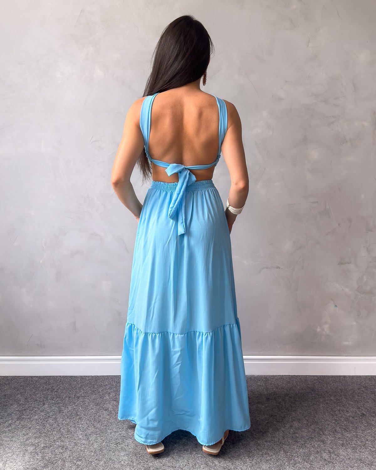 Este vestido longo é a escolha perfeita para quem busca um visual leve, elegante e moderno. Com recortes estratégicos e amarração nas costas, valoriza a silhueta e traz um toque de sensualidade na medida certa. O tecido fluido garante movimento e conforto, ideal para dias ensolarados, festas ao ar livre ou ocasiões especiais.